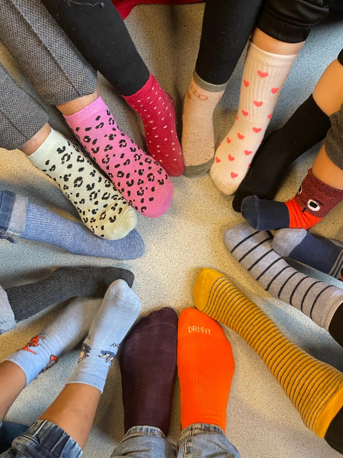 En soutien à l’association « Saphir », des élèves et enseignants se sont vêtus de chaussettes dépareillées.